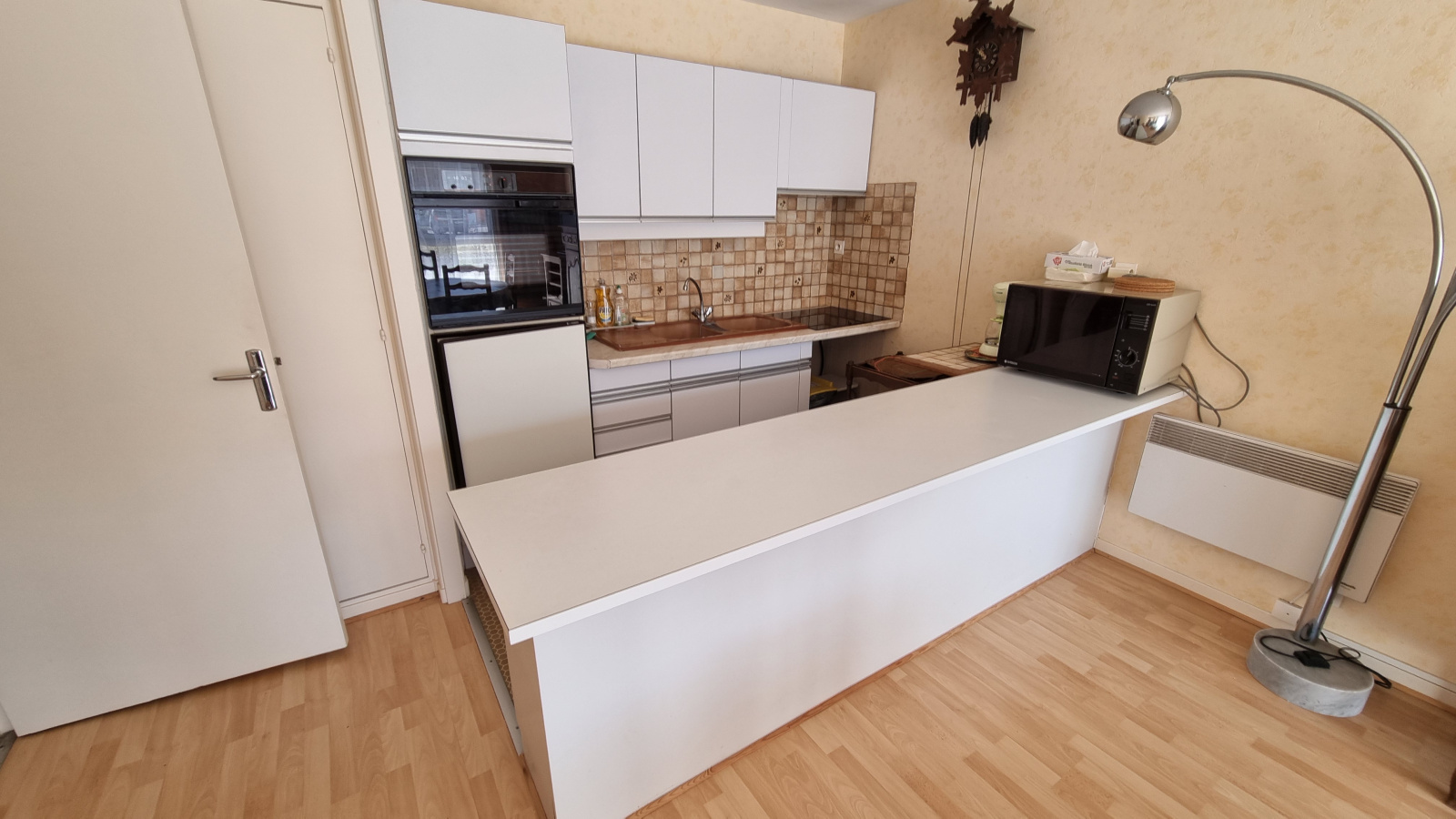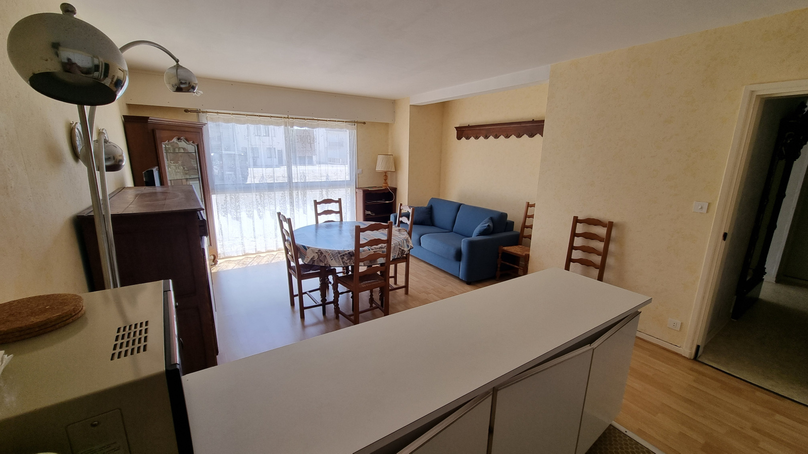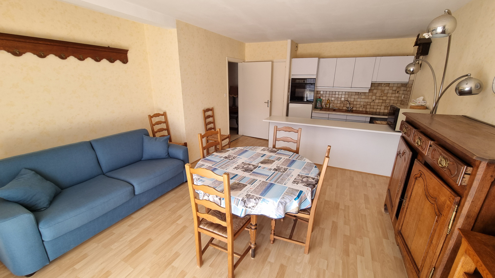 Dans une résidence à 100m de la plage, grand appartement de type 2 pièces de 47 m² situé en rez-de-chaussée dans une résidence rénovée récemment. Entrée avec placard, wc, belle salle de douche à l'italienne, grand séjour avec coin cuisine aménagée, chambre. Un emplacament de parking.